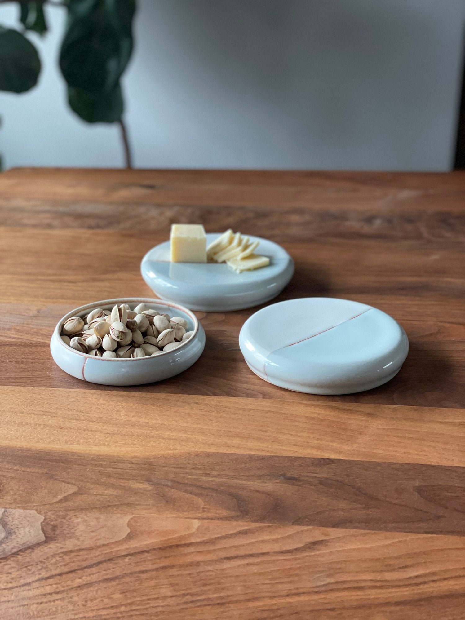 Walnut, Stoneware, and Brass