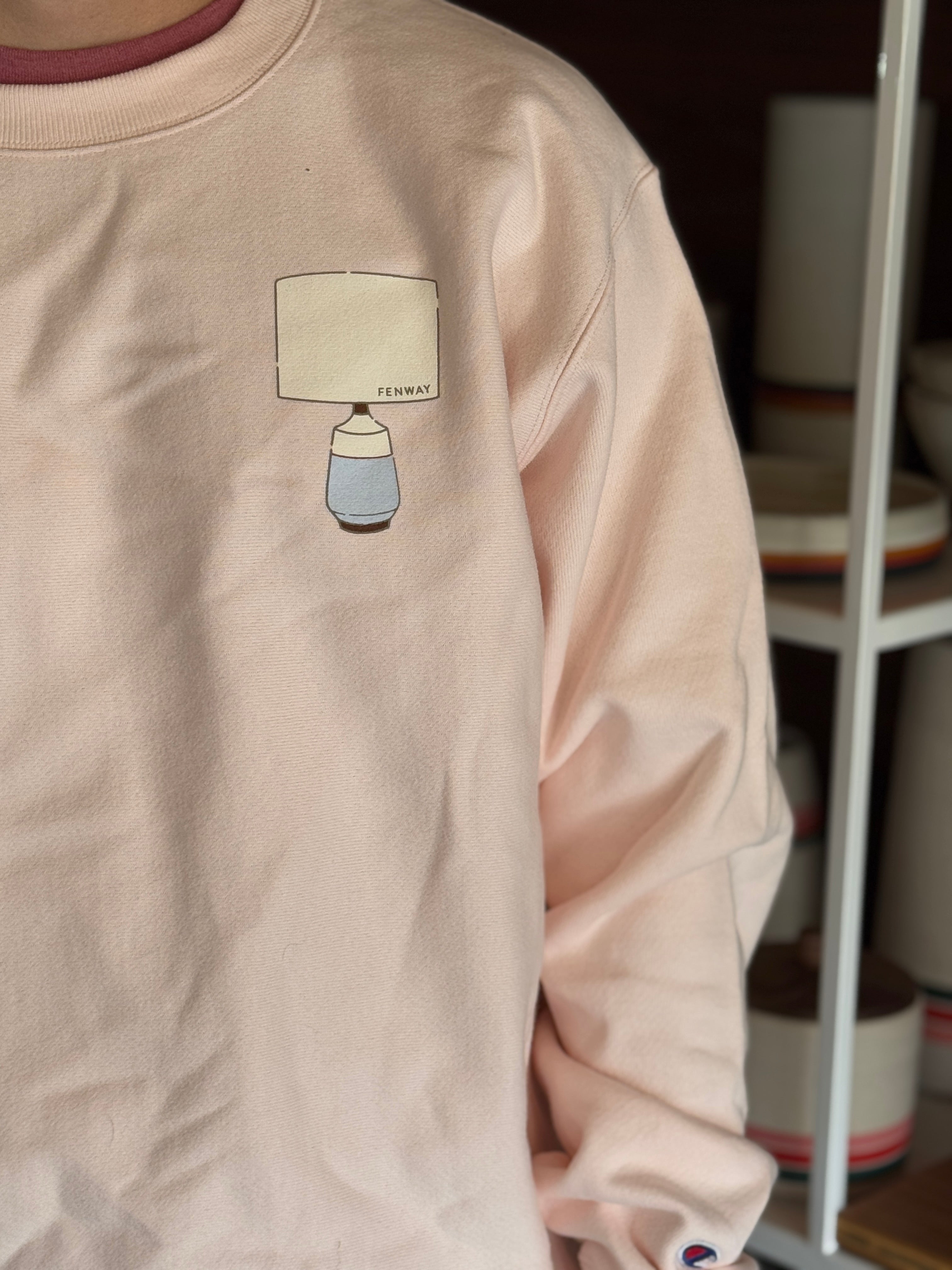 Our nicest sweatshirt in blush featuring our new lamp logo. The most wearable crewneck around - made with 80/20 blend from Champion. If you know, you know.