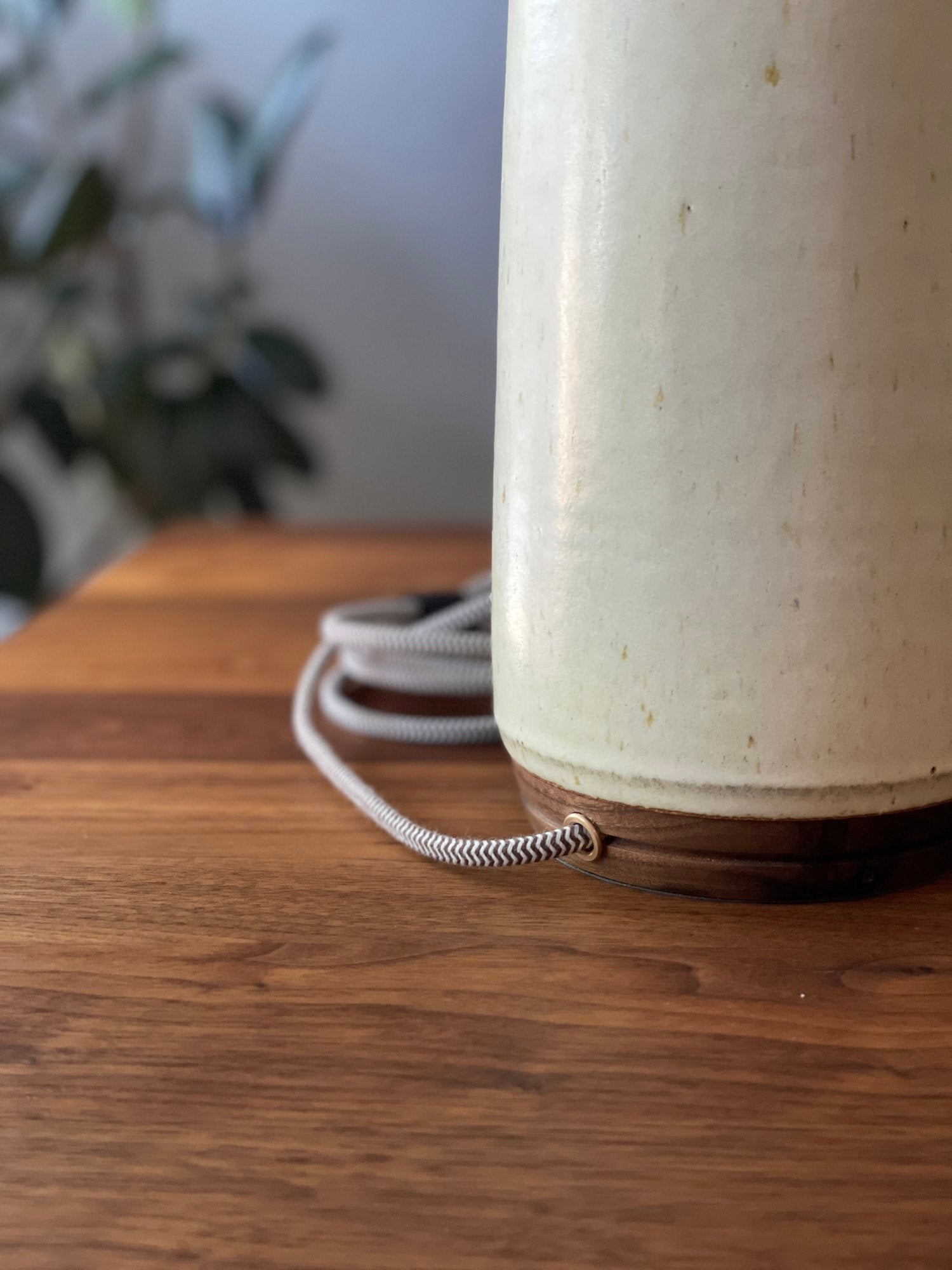 Our master woodworker hand-turns each neck and base of solid wood to perfectly match the form of it's ceramic body.