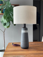 Perfectly proportioned, this stunning modern table lamp brings life to your space. Its sophisticated silhouette and detailed shou sugi ban oak neck make it a true statement. The moodiest of lamps that we offer.